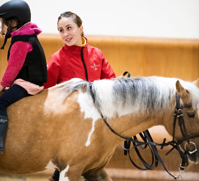 Das Kind erlernt die richtige Pflege, Vorbereitung und Ausrüstung des Pferdes.