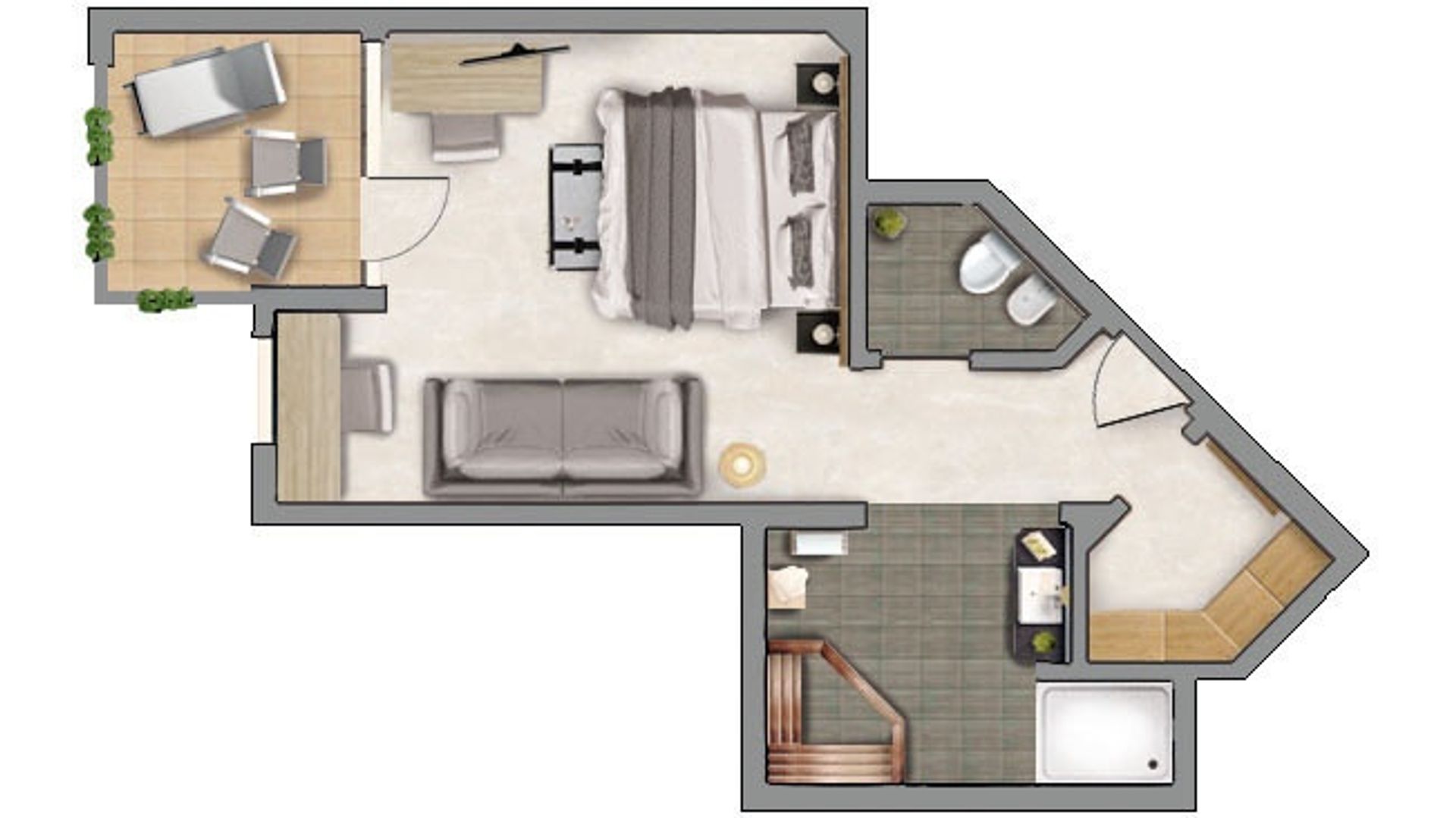 für 2 Personen, ca. 50 m² (inkl. Loggia), 1-Raum-Suite mit komfortablen Betten, Wohnecke, begehbarem Kleiderschrank und Südloggia. Tief garage im Guesthouse V inklusive.